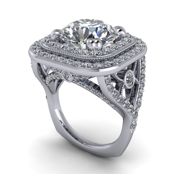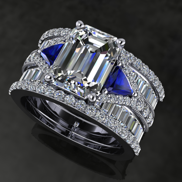 The process of designing and then manufacturing can take anywhere from three weeks to six weeks. Which includes a 3D computer design, making any necessary changes, adjusting all aspects of the piece and finalizing the production. The design is then loaded into a state of the art Jewelry 3D printer, which creates a plastic mold that will be cast with precious metals. Once rough casting is complete all diamonds or gemstones are set. The final phase is polishing, cleaning and final inspection.